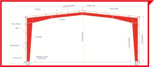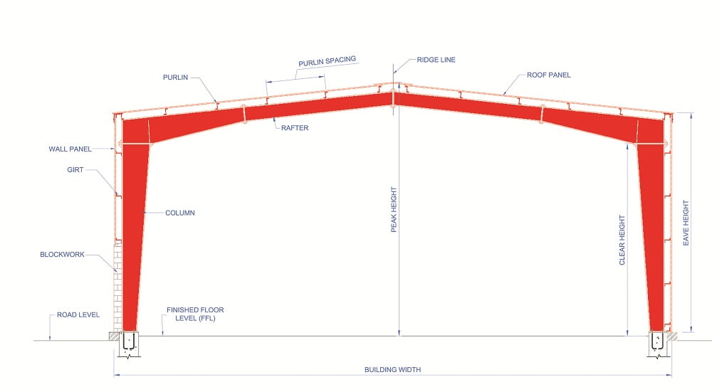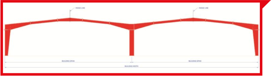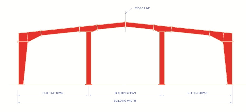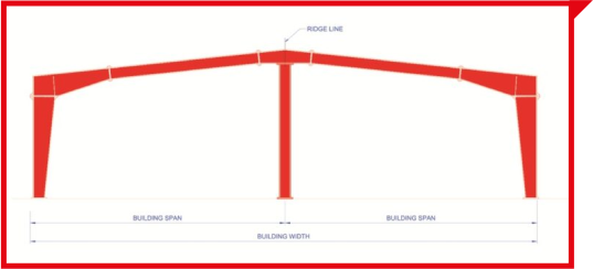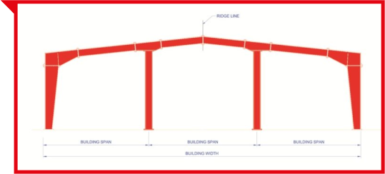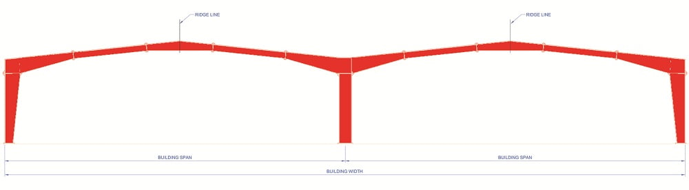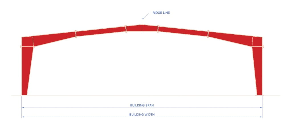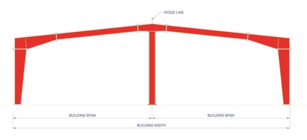 Primary steel framing system consists of building main frames, building end frames, and crane systems. Primary frames span the width of a building and are designed for full bay loading to form the backbone of a metal building’s support structure. The major types of primary framing are shown below.